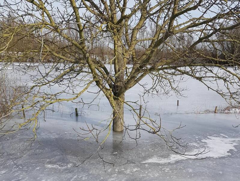 Het hoogwater van 1995 (De sepia foto hierboven is waarschijnlijk van 1926 ) was lang voor onze tijd als bewoners, en kwam met record waterhoogte gevoed door aanhoudende regen en smeltwatertoevoer uit Duitsland. De door RWS kennelijk niet zo heel goed beheerde rivierdijken leken het niet te houden en 250.000 mensen en al het vee werden uit het rivierengebied geëvacueerd. En ons oude, ruim 190 jaar oude huisje op de Kop? 25 cm water op de zomerkade en in het huis. Stromingsluw gelegen in en achter het ruim honderd jaar oude bos van Bato’s erf in een wild stromende rivier van 2100 meter breed. Billen knijpend mooi, en tenen krommend spannend. De regenbuien van 2021 moesten nog komen, met bijna 200 doden ten gevolg in Duitsland en België. Bij ons kwam deze hoogwatergolf niet verder dan de voet van de zomerkade gelukkig.