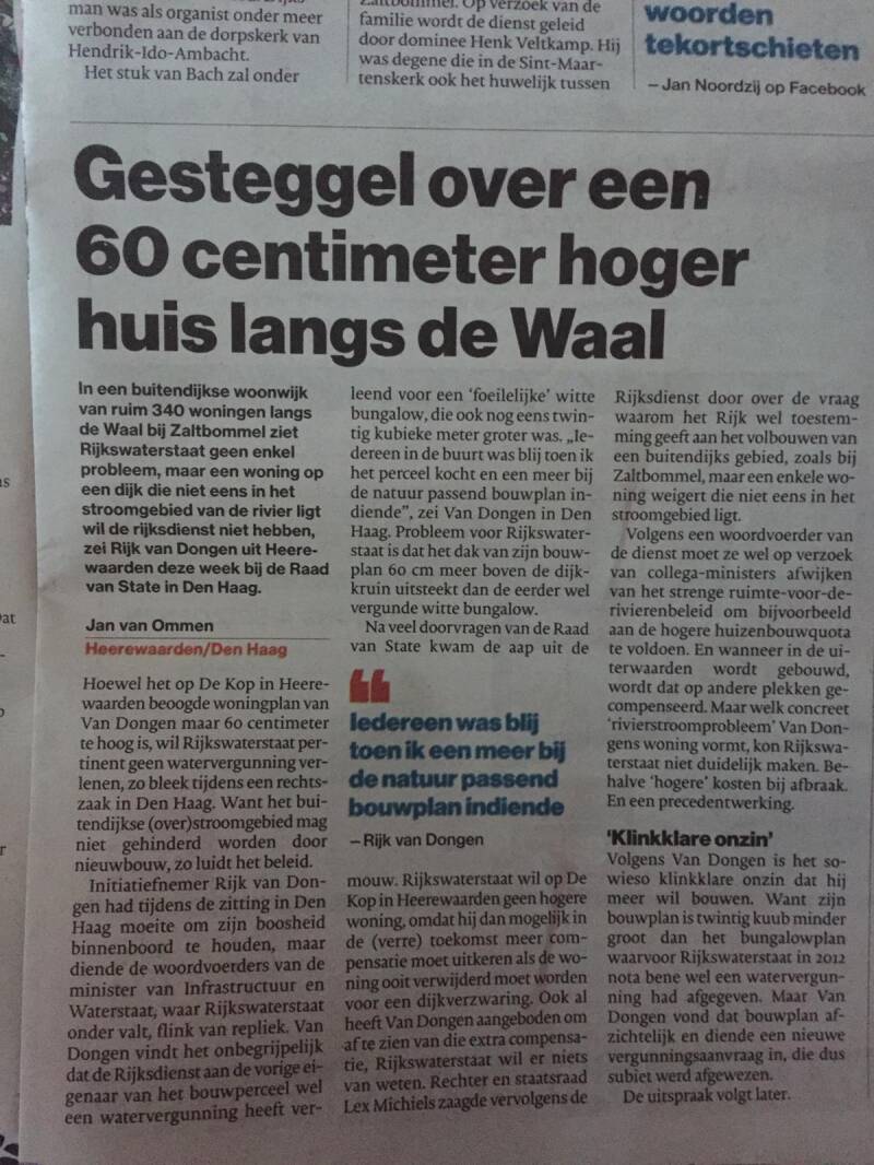 Lees ook even na wat RWS maar niet op tafel wil leggen: de 30m2 bouw procedure. RWS laat structureel en achterbaks na ons, en de staatsraden te informeren over de toepassing van deze bouwrechten. Of toch? zijn de staatsraden onderhands geïnformeerd en schrijven ze tegen alle logica en eerdere ABRvS uitspraken in de eerste regel over op verzoek van RWS? Ambtelijk plagiaat ?