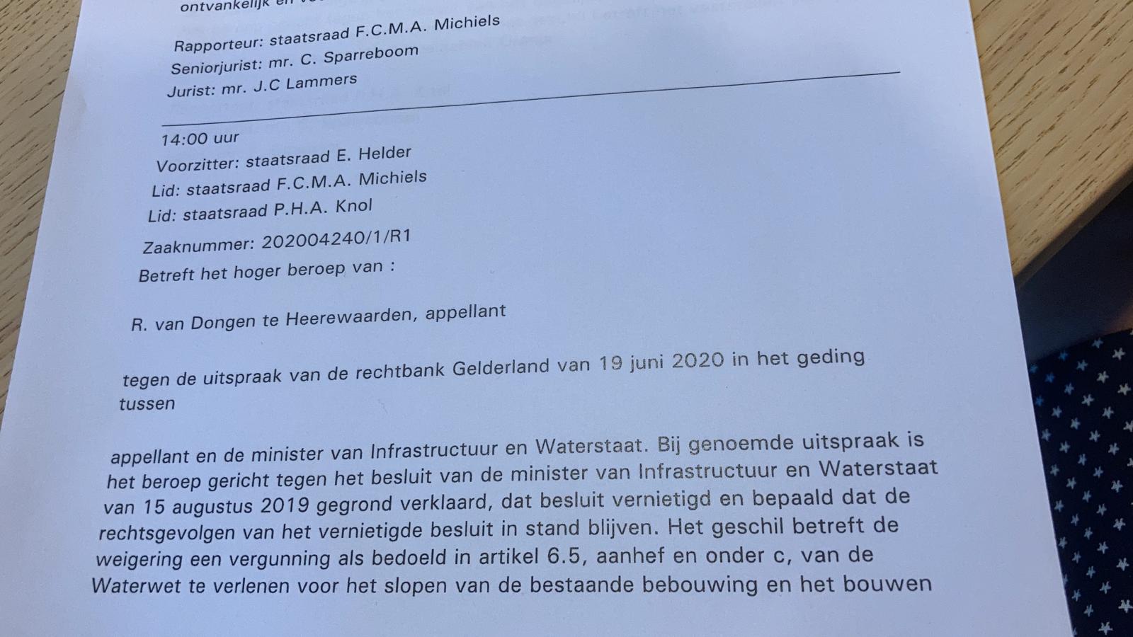 Na de verrassende én teleurstellende uitspraak van het kantongerecht Gelderland moesten we wel naar de hoogste rechtbank voor bestuurlijke geschillen, de algemene bestuursrechter Raad van State. Het hele papieren circus weer opnieuw optuigen en versturen, en afwachten maar weer. Daar zit de top van de rechters, die op basis van kennis en kunde de eervolle positie van Staatsraden hebben bereikt. Ik vertrouw erop dat ze tot op het bot zijn gemotiveerd om scherp te analyseren en recht te spreken. Zoals bij de toeslagenaffaire zittingen dodelijk scherp.