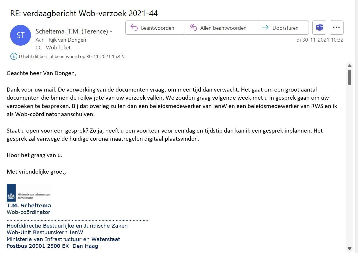 Oh nee toch niet, de waterdrager wil wel een vergadering beleggen. Nou daar heb ik bij voorbaat al geen vertrouwen in. Wat ik al niet bij RWS voorgelogen en afgezeken ben in hun minachting. Ik heb de betreffende ambtenaar een beetje impulsief antwoord geschreven, het was op een drukke dinsdag herinner ik me: